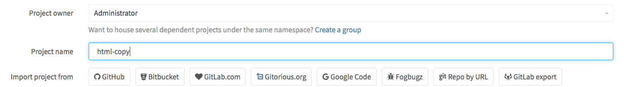 1. The new GitLab project import feature is at the far right of the import options when creating a New Project. Make sure you are in the right namespace and you have entered a project name. Click on GitLab export: